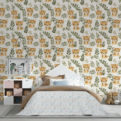 KidsWallAdăugați o notă de farmec în camera copilului dvs. cu acest tapet pentru cameră de copii, decorat cu mici tigri adorabili care ies din frunzișul lu...