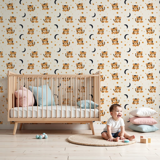 KidsWallTransformați camera micului vostru aventurier cu acest tapet fermecător, unde tigrii jucauși dansează sub un cer înstelat. Cu nuanțe blânde de bej ...