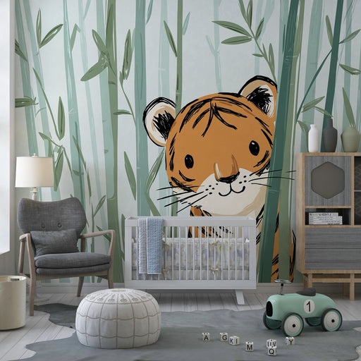 KidsWallImbarcați-vă micuțul într-o lume fermecătoare cu acest tapet pentru bebeluși care prezintă un tigru adorabil ascuns printre bambusi. Această ilustr...