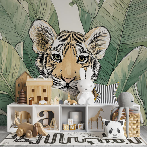 Afișați toate detaliileTapet pentru cameră de copii | Micul tigru printre frunze
