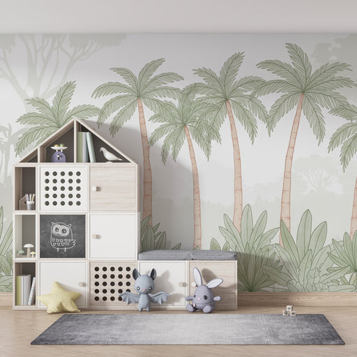 Tapet camera bebeluși | Palmieri eleganți și vegetație delicată