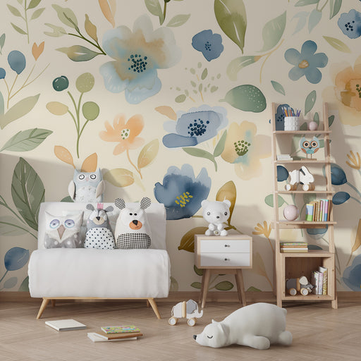 Tapet cameră copil | Grădină înflorită în nuanțe pastelate și albăstrui