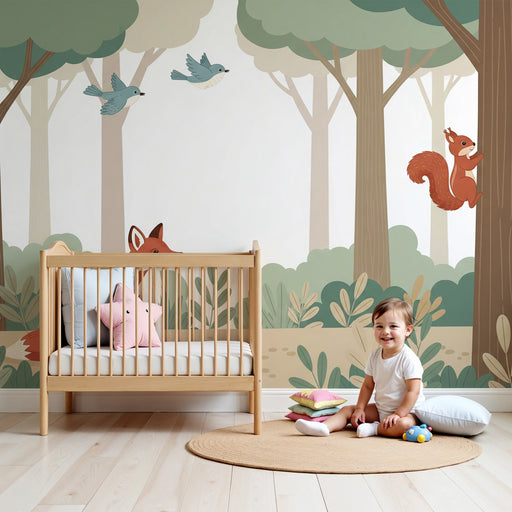 Afișați toate detaliileTapet de cameră de bebeluși | Animale drăguțe în inima pădurii