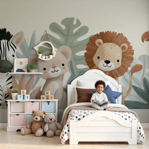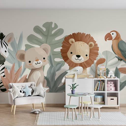 Papel de parede criança | Animale adorabile din junglă în culori blânde