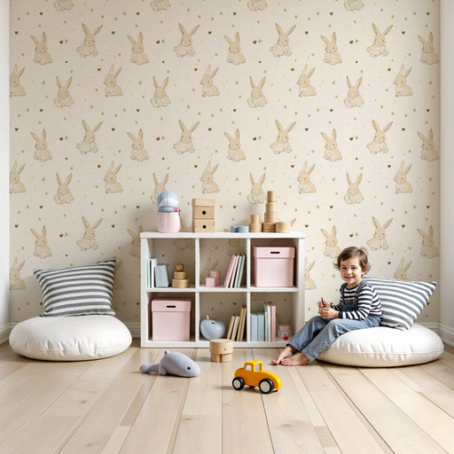 KidsWallTransformați camera copilului dvs. cu acest tapet încântător, unde iepurii dulci se odihnesc pe nori pufoși. Conceput cu nuanțe neutre și liniștito...