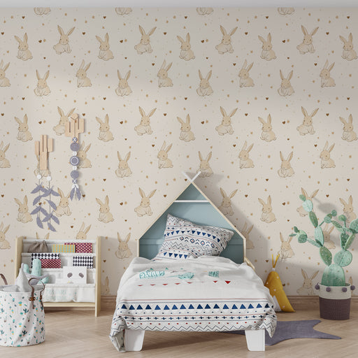 KidsWallAdăugați o notă de delicatețe și fantezie în camera copilului dvs. cu acest tapet pentru copii care ilustrează un iepuraș adorabil ieșind din iarbă...