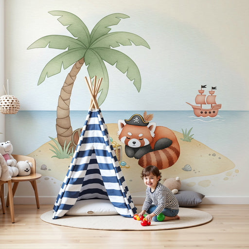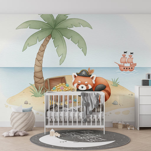 KidsWallOfereți copilului dvs. o aventură maritimă cu acest tapet pentru copii ilustrând un panda roșu adorabil îmbrăcat în pirat pe o plajă însorită. Cu u...