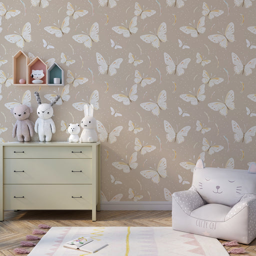 Tapet pentru cameră de copii cu modele | Fluturi delicati pe fundal bej