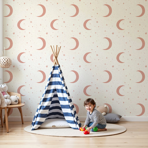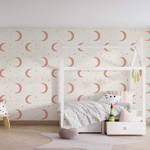 Tapet pentru cameră de copii cu motive | Lună și stele în nuanțe pastel