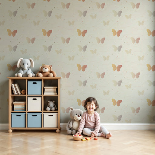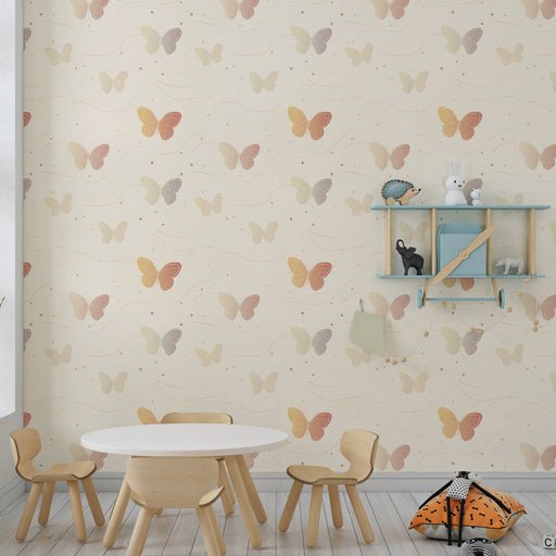 Tapet pentru cameră de copii cu modele | Fluturi pastel pe fundal moale