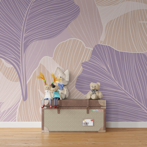 KidsWallTransformați camera copilului dvs. cu acest tapet pentru copii cu modele delicate de frunze. În nuanțe moi de mov și bej, fiecare frunză este decor...