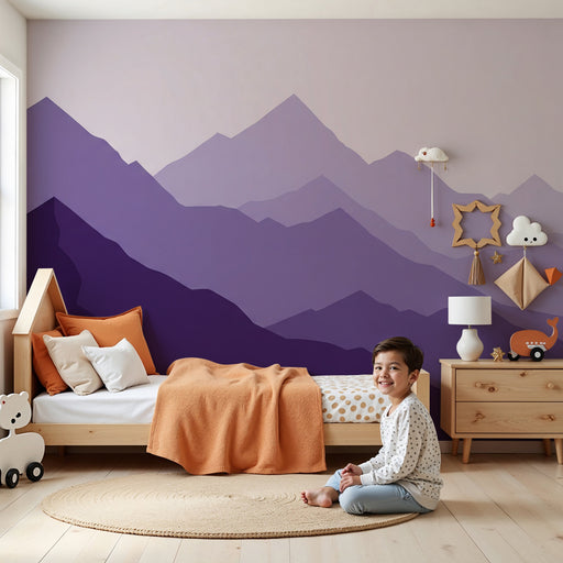 KidsWallTransformați camera copilului dvs. într-un adevărat refugiu de liniște cu această tapet inspirat de munți. Nuanțele blânde de mov creează o atmosfe...