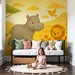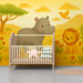 Transformați camera copilului dvs. într-un adevărat safari cu acest tapet pentru copii care ilustrează un hipopotam fericit și un leu curios evoluând în inima unei savane aurii. Înconjurați de flori colorate și arbori impunători, aceste animale adorabile aduc o notă ludică și caldă în decor.