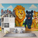 Acest tapet original este perfect pentru a adăuga o notă veselă și colorată în camera copiilor dumneavoastră. Reprezentând un grup de animale simpatice, inclusiv lupi, un leu, o panteră și un leopard, această imagine creează o atmosferă ludică și primitoare.