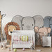 Nuantele blânde și ilustrațiile fermecătoare trezesc curiozitatea și imaginația micilor exploratori. Girafa, cu petele sale delicate, zâmbește prietenoasă în timp ce leul poartă mândru coama sa flămândă, aducând o notă de căldură în cameră. Elefanții, uneori curioși, alteori ștrengari, adaugă un aspect dulce și reconfortant acestui univers.