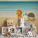 Tapet pentru camera copilului | Pui de leu și broască țestoasă la plajă