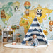Tapet cu hartă cu animale | Călătorie în jurul lumii pentru copii