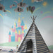 Bleu Bébé Château Féerique Multicolore Pastel Étoile