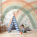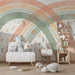 Transformujte izbu vášho bábätka na magický priestor s touto tapetou pre bábätká zdobenou jemnými pastelovými dúhami. Jemné odtiene ružovej, zelenej a oranžovej sa harmónicky miešajú, vytvárajúc upokojujúcu a snovú atmosféru.