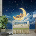 Táto úžasná tapeta s hviezdne oblohou zachytáva roztomilo spiacu mačku na mesiačiku, obklopenú bavlnkovými obláčikmi a žiarivými motýľmi. Ideálne pre detskú izbu, vytvára jemnú a upokojujúcu atmosféru, ktorá podporuje fantáziu a snozenie.