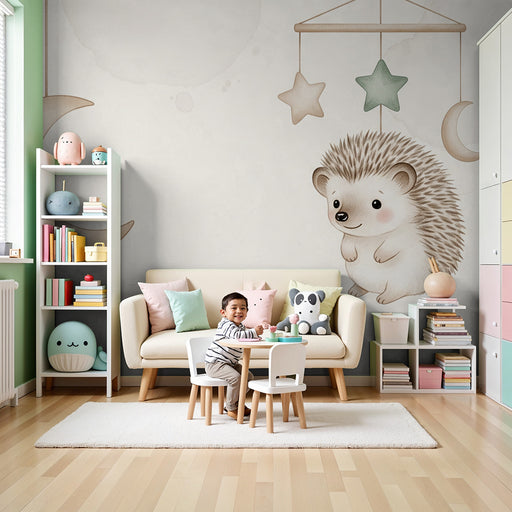 KidsWallPretransformujte izbu vášho bábätka do kúzelného vesmíru s touto tapetou pre bábätká, ktorá zobrazuje rozkošného ježka sediaceho na jemnej mesiačik...