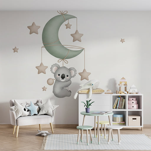 KidsWallPretransformujte izbu vášho bábätka do jemného kokónu s týmto papier peint pre bábätká, ktorý zobrazuje roztomilého koalu visiaceho na jemnej mesia...