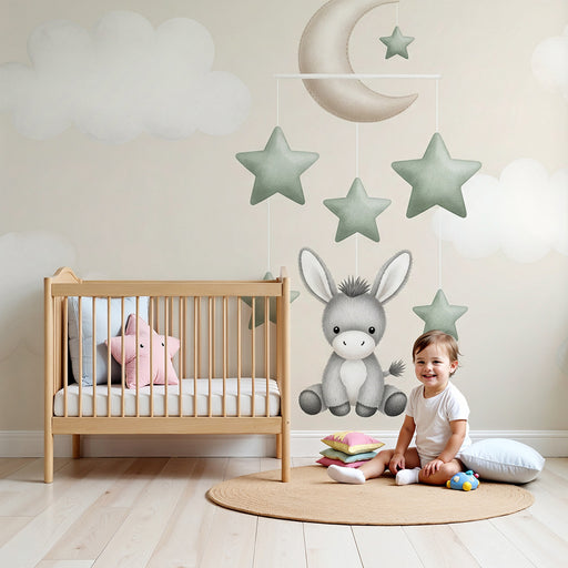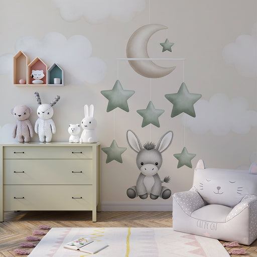 KidsWallVytvorte upokojujúci svet pre vaše dieťa s týmto papier peint pre detskú izbu, ktorý zobrazuje roztomilý mobil. Malý osol s pôvabným pohľadom visí ...