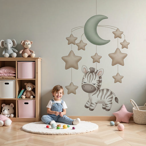Zobraziť všetky podrobnostiPapier de parede detskej izby | Hviezdny mobil s zebrami a mesiacom