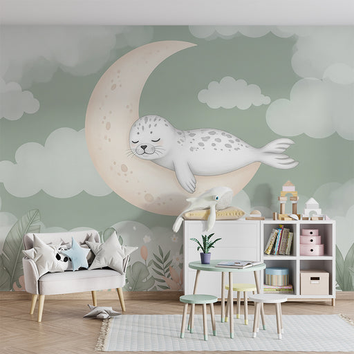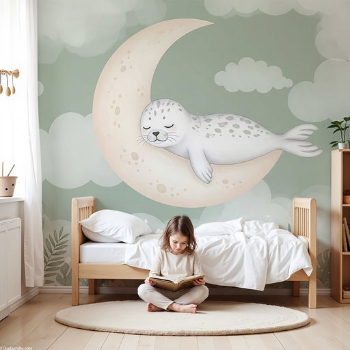 KidsWallPretransformujte izbu vášho bábätka na útulný priestor s týmto papierom na stenu pre bábätká, ktorý zobrazuje rozkošného tuleňa spiaciho na mesiači...