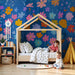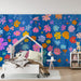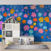 Detská izba tapeta | Farebné kvety na modrom pozadí