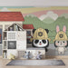Pretransformujte izbu vášho dieťaťa na skutočnú dobrodružnú plochu s týmto papier peint pour enfants, kde sa objavujú zbožňované postavy v prostredí hasičov. Panda a králik, obaja vybavení hasičskými prilbami, hrdinsky stojí pred farebnou kasárňou, pripravení na misiu.