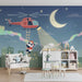 Detská izba tapeta | Panda dobrodruh a nočný vrtuľník