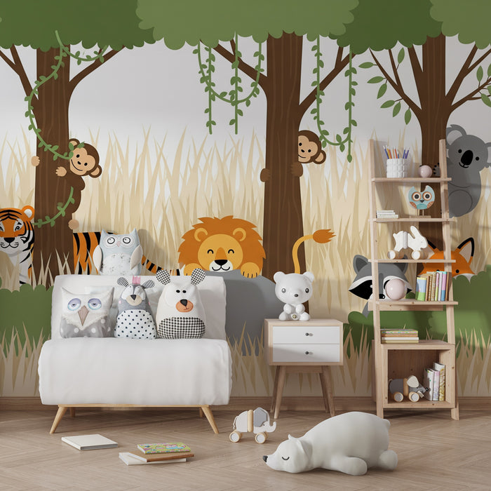 Detská izba tapeta | Zábavná safari s džungľovými zvieratami