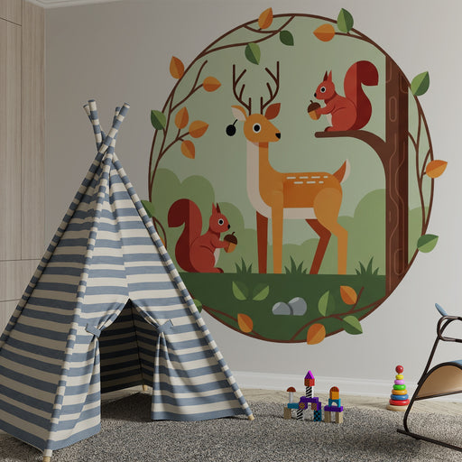 Zobraziť všetky podrobnostiDetská izba tapéta | Jelen a veverice v očarujúcom lese
