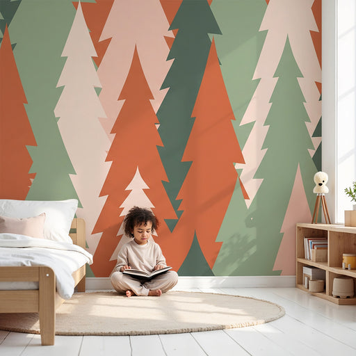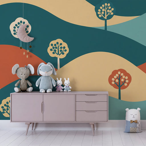 Detská izba tapeta | Abstraktná krajina s farebnými stromami a jemnými vlnami