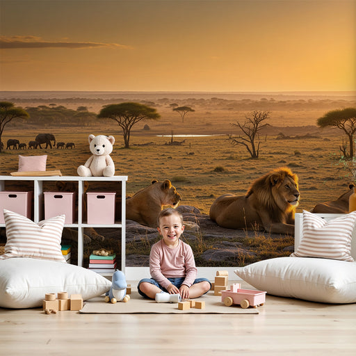KidsWallPremaľujte izbu vášho dieťaťa do pravého útočiska savany s týmto tapetou pre deti. V srdci zlatého krajiny majestátni ležia levi, zatiaľ čo skupina...