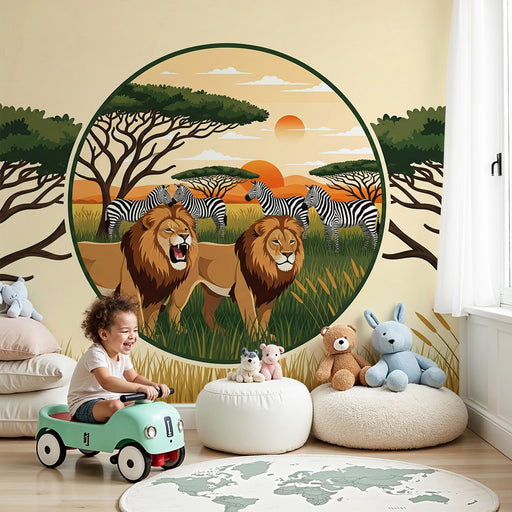 KidsWallPretransformujte izbu vášho dieťaťa na skutočnú safari s týmto papier peint pre deti, ktorý zobrazuje majestátne levice a zebry na savane. V srdci ...