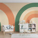 Transformujte izbu vášho bábätka s týmto papier peint pre bábätká s upokojujúcimi geometrickými motívmi. Farebné oblúky v odtieňoch zelenej, broskyne a krému vytvárajú teplú a priateľskú atmosféru, ideálnu pre priestor snov a odpočinku.
