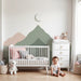 Pretransformujte izbu vášho bábätka do pokojného priestoru s týmto papier peint pre bábätká, ktorý zobrazuje jemné hory a upokojujúci mesiac. Jemné odtiene zelenej a ružovej vytvárajú pokojnú a pohodlnú atmosféru, ideálnu pre spánok a snívanie.