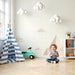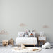 Radostné oblaky sa jemne vznášajú nad horami, sprevádzané žiariacimi hviezdami, ktoré dodávajú celku dotyk kúzla. Tento očarujúci dizajn podporuje predstavivosť vášho malého a prináša pocit pokoja do miestnosti.