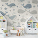 Papier de parede izba pre bábätká | Motívy šedej a modrej veľryby a dúhy