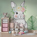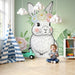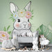Predekorujte izbu vášho bábätka s týmto tapetou pre bábätká s úžasným zdobeným králikom so vencekom kvetov. Tento očarujúci dizajn obklopený bujnými tropickými listami prináša do priestoru dotyk jemnosti a prírody.