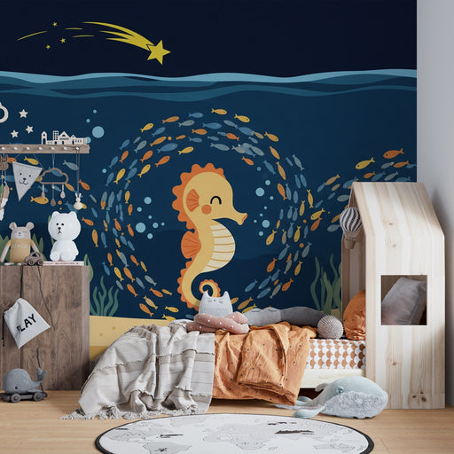 KidsWallPonorte sa do fascinujúceho vodného sveta s týmto papierom na stenu pre bábätká, ktorý zobrazuje roztomilého morského koníka pokojne plávajúceho m...