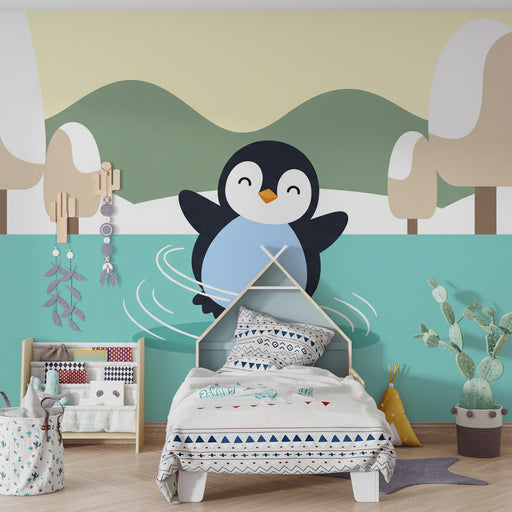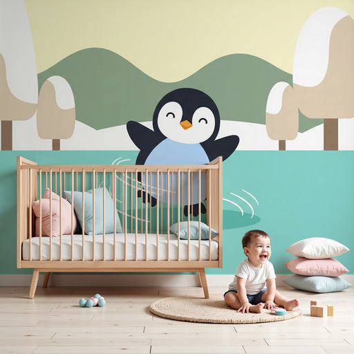 KidsWallPretransformujte izbu vášho bábätka do očarujúceho sveta s týmto tapetou pre bábätká, ktorá zobrazuje roztomilého tancujúceho tučniaka na zimnom po...