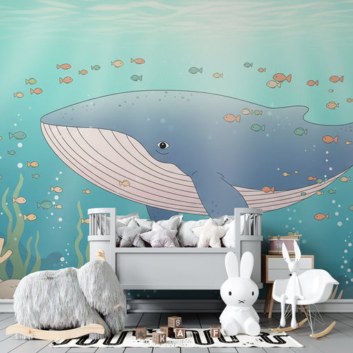 KidsWallNastúpte na dobrodružstvo pod vodou s týmto tapetou pre deti, ktorá zobrazuje nádhernú veľrybu, ktorá pokojne pláva medzi farebnými rybami. Tento k...