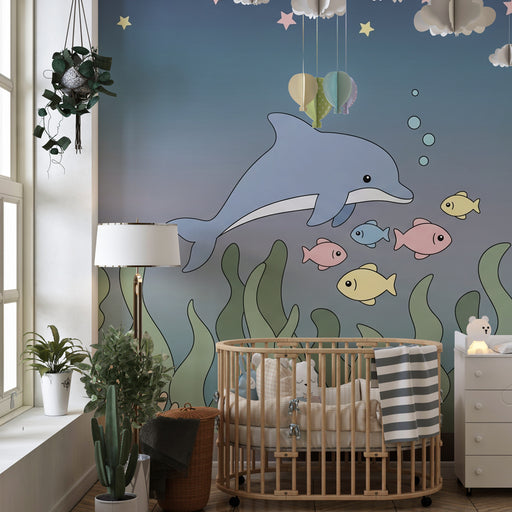 KidsWallPrineste morský dotyk do izby vášho dieťaťa s týmto papierom pre deti, ktorý zobrazuje roztomilého delfína hrajúceho sa s malými rybkami v očarujúc...