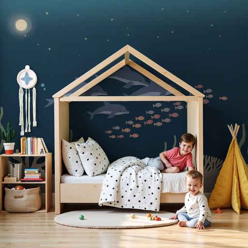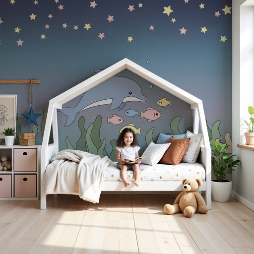 KidsWallTransformujte izbu vášho dieťaťa na skutočný vodný raj s týmto tapetou pre deti, ktorá zobrazuje hravé delfíny v podmorskom svete. Pod hviezdnou ob...