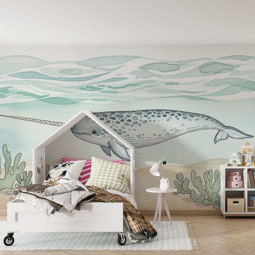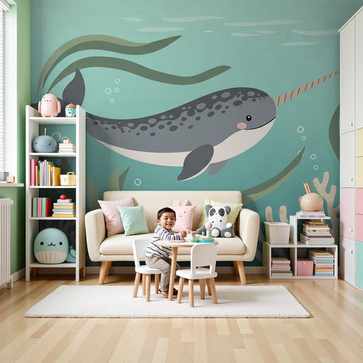 KidsWallPonořte sa do očarujúceho podmorského sveta s týmto tapetou pre bábätká, na ktorej je zobrazený roztomilý narvál, ktorý pláva pokojne. Tento dizajn...