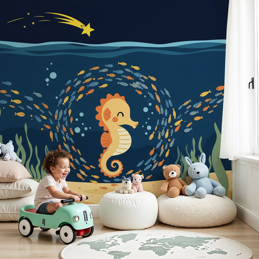 KidsWallPretransformujte izbu vášho dieťaťa do oceánu pokoja s týmto papier peint pre deti, ktorý zobrazuje veľkolepé morské kone v útulnom morskom svete. ...