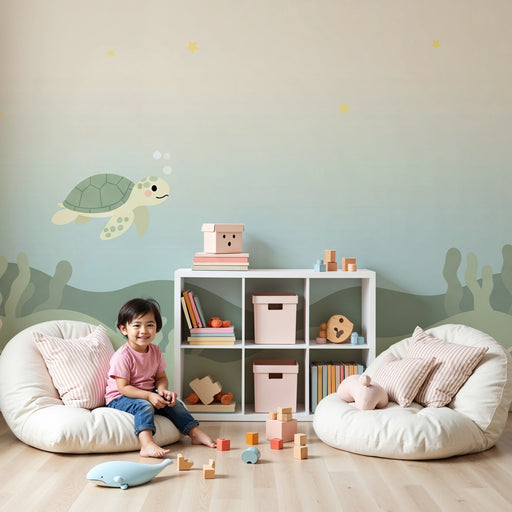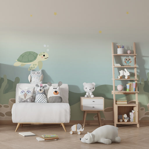 KidsWallPretransformujte izbu vášho bábätka do upokojujúceho morského sveta s týmto papier peint pre bábätká, ktorý zobrazuje roztomilú korytnačku plávajúc...
